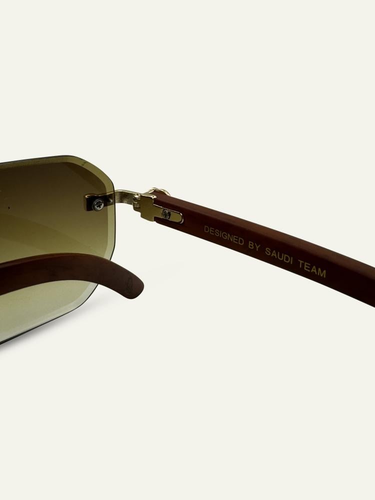 صممت هذه النظارة بإطارات وأذرع خشبية تعكس هوية المملكة العربية السعودية في شعارها