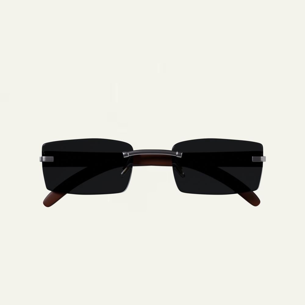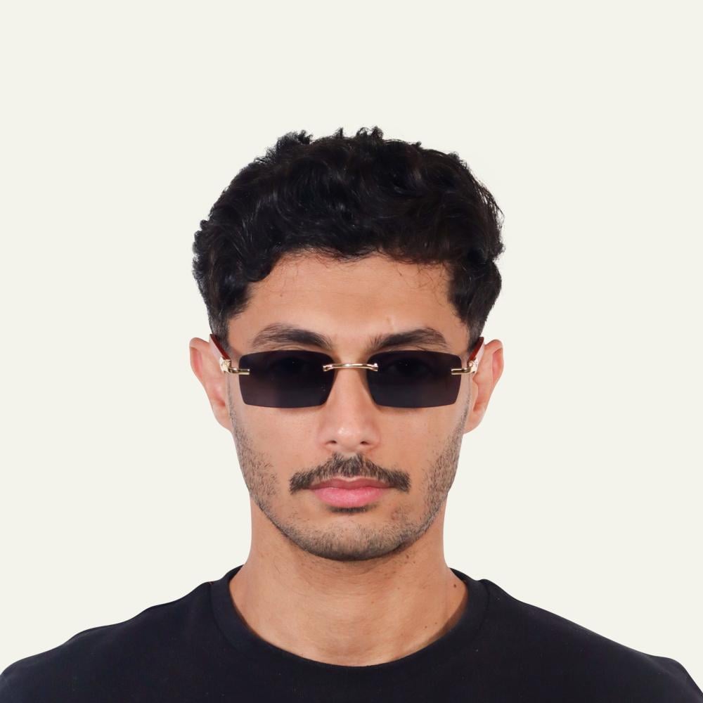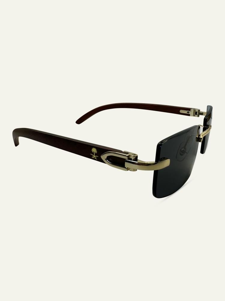 صممت هذه النظارة بإطارات وأذرع خشبية تعكس هوية المملكة العربية السعودية في شعارها